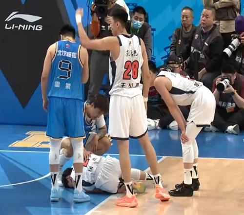 当然了,本场比赛,最终广东球迷揪心的并不是输了多少分,而是,球队后场悍将徐杰的受伤,在比赛中,徐杰被北京队中锋周琦撞倒在地上,显得十分痛苦,从慢镜头来看,周琦撞到了徐杰的膝盖,这导致徐杰无法起立……