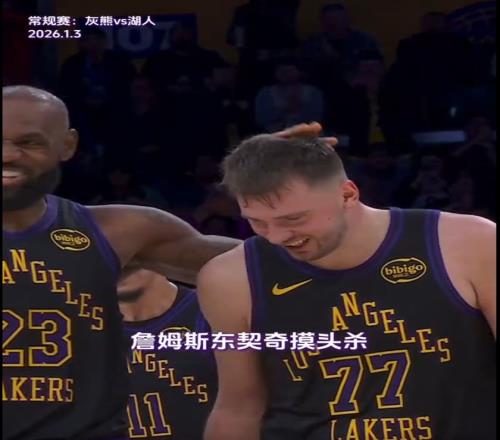 1月3日消息,1月3日结束的NBA常规赛中,湖人主场128-121击败灰熊。本场比赛,詹姆斯发挥出色砍下31分9篮板6助攻,比赛最后时刻,詹姆斯和东契奇在场上来了一出“摸头杀”,老詹一脸慈祥,77则是享受其间。